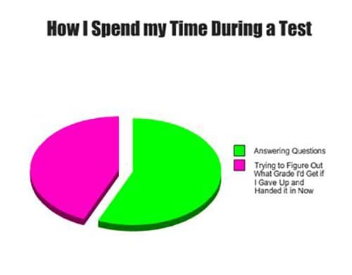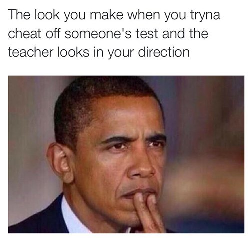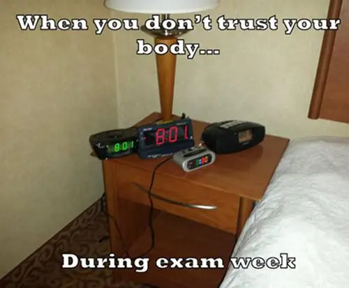 Welcome to the final part of our series on hilariously relatable images about studying and exams! If you've ever been trying to cheat on a test, you'll know the universal 'look' everyone does once the teacher looks in your direction, which is really quite funny. And, isn't it nice to know that there are other people around the world who sit there trying to calculate what grade they would get if they simply gave up there and then? You aren't alone! It's also comforting to know that there are people just as paranoid about not waking up as you are, who set a minimum of 5 alarms, you know, just in case. Take a look below for our final set of hilarious images!