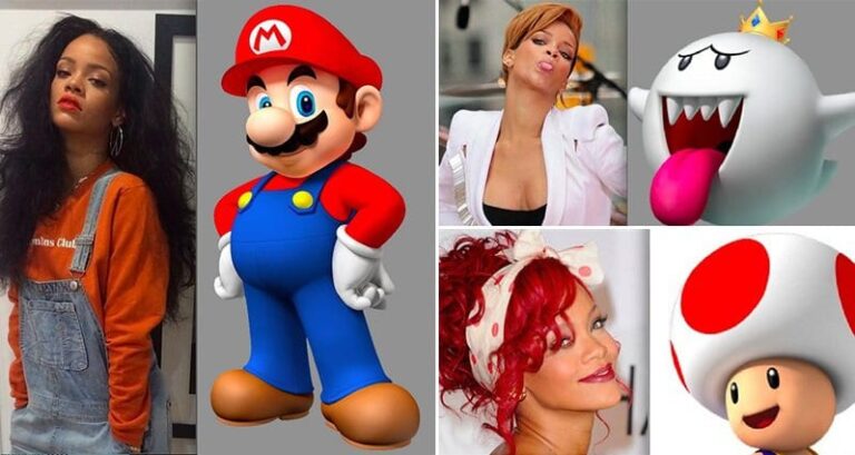 Ranzok on Reddit and his girlfriend are heavily into video gaming and it seems like Rihanna might be too. You see, Ranzok's girlfriend noticed that the singer's crazy outfits often seem to have a theme… Mario Party characters! We love the Princess Peach comparison! Check out the photos below and see if you agree.