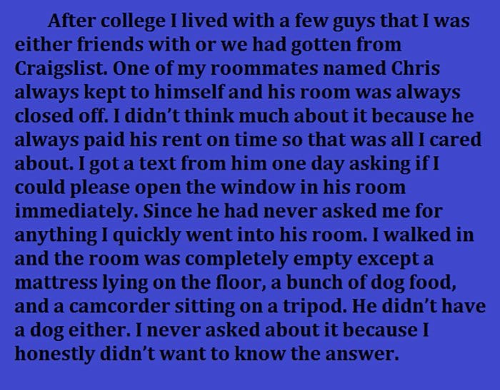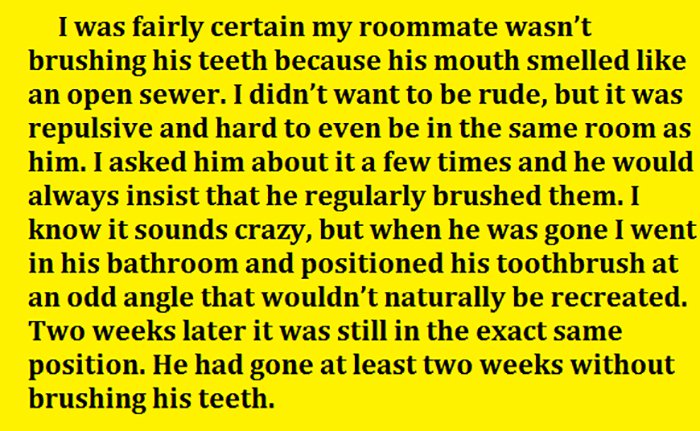 There are many reasons in life that people end up having a roommate. For example, to make some extra cash, living on a school campus, or because it’s more affordable sharing a home with other people. However, a lot of the time, it doesn’t plan out how you imagined. Naturally, people tend to worry about roommates who are messy, noisy and late on rent, but, if you take a look at the 11 horror stories below, you’ll see how much worse situations can get!