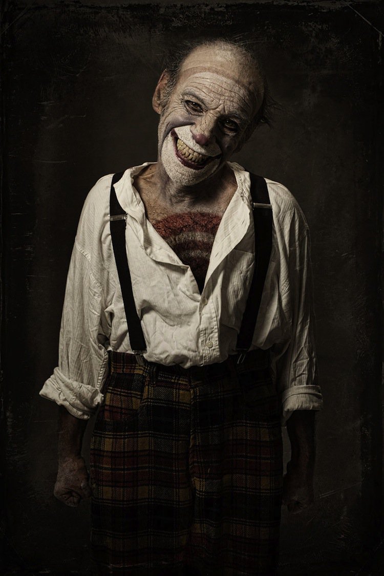 Remember Pennywise, the sadistic, creepy clown from the movie IT, which was adapted from Stephen King's book? Well, he might have scared you back in 1990, but he's not half as macabre as the terrifying clowns you're about to see here. 'Clownville' is a photo series of spine-chilling clown portraits taken by French-born photographer Eolo Perfido. With their exaggerated facial expressions and freaky makeup, these clowns are sure to send a shudder down your spine. Perfido has certainly hit the mark in his aim of achieving a grotesque look. The photographer says he was inspired by silent film stars who were forced to exaggerate their emotions because they could not speak. Check out his 'Clownville' portraits yourself, below…