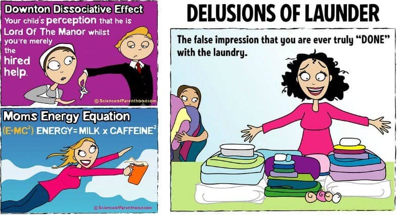 Do you ever think you’ve finished all the laundry before realizing that more has magically appeared? Then you might be suffering from Delusions of Launder. Or how about when you’re trying to tire your kid out, but they’re still full of energy and you’re the one who’s tired? Well, this can be explained by the Inverse Fatigue Principle! The folks behind the Science of Parenthood webcomic have some excellent scientific theories that definitely shed light on the issues parents face! Check out these more twelve hilarious comics that explain the science behind parenting and find out the truth!