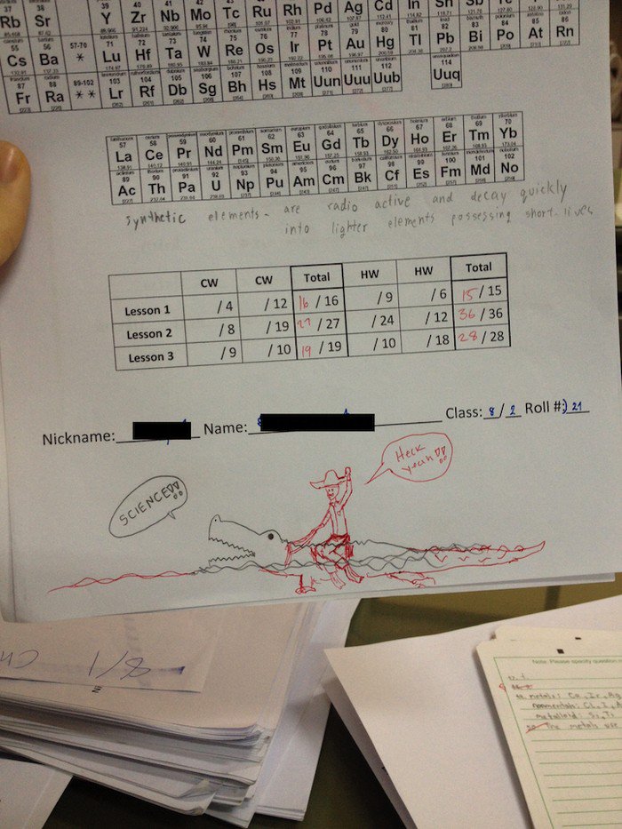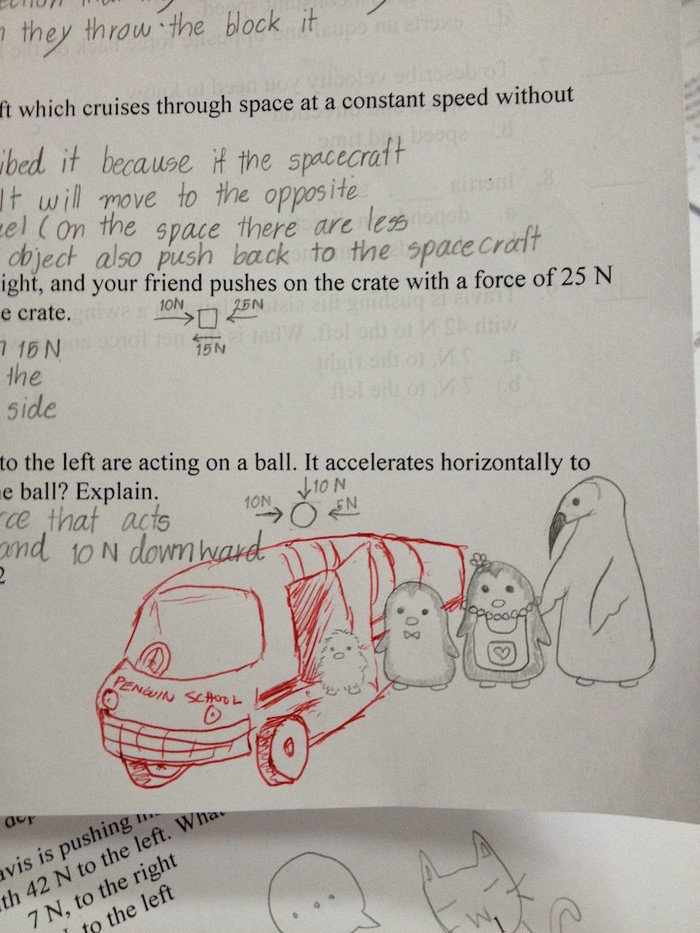 Science class can be so boring, so it’s no wonder students doodle on their papers and assignments at times. However, what you don’t expect is for the science teacher to join in the fun! This is where this teacher in Thailand is different. He noticed that many of his students were drawing on their papers so he decided to add to the pictures with hilarious results and upload them to Imgur.
