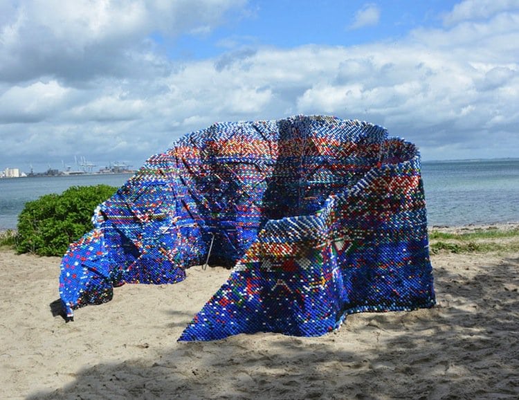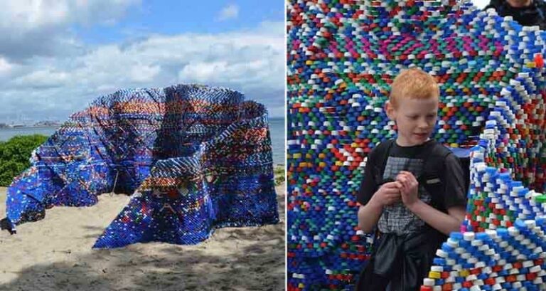 An artist called Arunkumar based in Gurgaon, India, spent a whole year collecting bottle screw caps to create this amazing sculpture. Called "Droppings in the Dam(n)", the sculpture is made up of more than 75,000 used bottle caps in varying colors. The artist said collecting the bottle caps was an interesting exercise! Check out the images of his awesome work below!