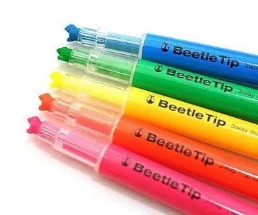 Mark your notes in an organized and unique way with these 3-way highlighter pens! They feature a special tip that lets you highlight with a fine line, a thick line or a double line either side of the text. They'll come in handy for your revision notes!