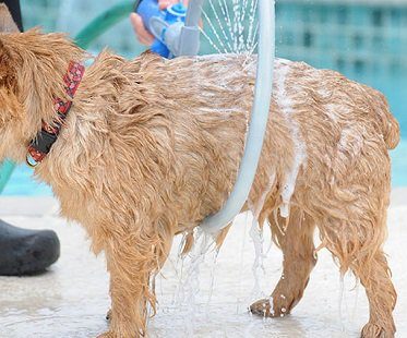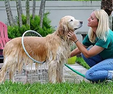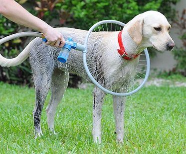Now you can scrub your mucky pup clean in a quick and easy way using this awesome dog washer! It's 360 degree design allows water to get all around your pet's body as you wash them. Just attach it to your hose, add some soap and get washing! Fido will be shampooed and rinsed in as little as 1 minute. Also features adjustable water pressure to suit your pet's liking.