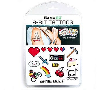 Gaming fans will love these 8-bit temporary tattoos! You'll get two sheets full of fun and different transfers so when you get bored of one you can change it for another! Easy to apply and great for all ages.