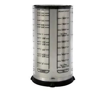 Make life in the kitchen simple and easy with this adjustable measuring cup! It's a must-have item for the keen baker as you can measure all of your ingredients whether liquid or dry. The aluminum canister functions as a plunger so you can moved the cup to the desired measurement.