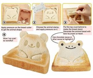 Make your children's breakfast or lunch extra fun with these animal toast stamps! Includes 3 different shapes: a frog, a panda and a bear. They're great to use to encourage picky eaters to to eat properly and finish their food. Perfect for when making sandwiches or toast.
