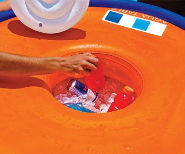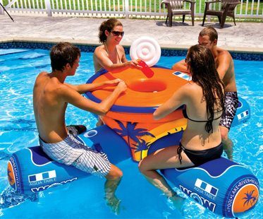 The aqua table is the table of all floating tables! Featuring a large cooling department with a drainage port, built in cup holders for every seat and an anchor bag to keep you in place if you don't want to float all over the place! Awesome!