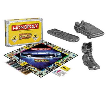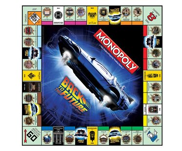 Travel across the ages from the comfort of your home with this awesome version of Back to the Future monopoly! You'll have hours of fun as you collect locations and time-hop through the eras! Game pieces include the time machine, the cowboy hat, and of course, the hoverboard!