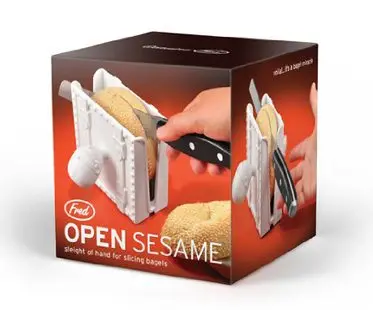 Have fun at breakfast time with this bagel slicer! Designed to look like the classic magic trick of sawing someone in half! Place your bagel inside and slice through with ease, ready for your favorite fillings.