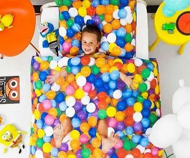 Usually, laying in a pool filled with hundreds of plastic balls isn't very comfortable, unless you're laying in this ball pit bedding set! Your kids can lay in it from evening right through to morning, which they would never get to do in a real ball pit! Includes a duvet cover and a pillowcase.