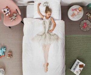 Bedtime has never been more exciting when your little one has this ballerina bedding set! When she climbs inside the soft cotton sheets the printed tutu and tiara will look like she's wearing it!