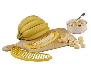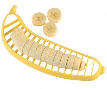 Slice your bananas in a flash using this simple banana cutter! Perfect to use for cereals, puddings, fruit salads and sundaes! You can slice your entire banana in one quick motion. Can also be used for hotdogs.