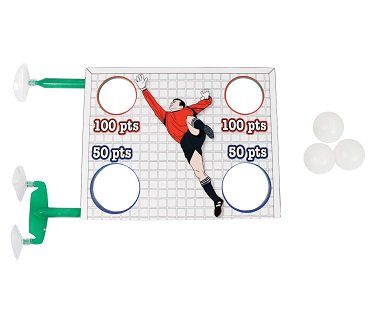 Soaking in the tub has never been more fun when you have this bathroom soccer game! It's a great way to test your accuracy skills and see how steady you can keep your hand when you free kick your way towards the goal. Attach the target to the wall with the suction cups and get shooting!