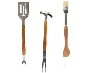 Every handyman who loves to grill needs this awesome BBQ tools set! It includes 3 BBQ utensils at one end and useful household tools on the other end! You will get a spatula with a wrench, a fork with a hammer and a brush with a tape measure. A great birthday or father’s day gift.