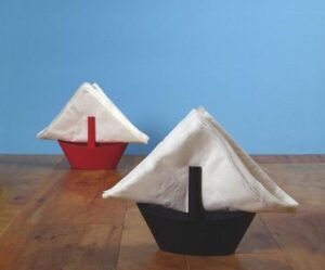 Hit the high seas when it comes to setting up your dining table with this boat napkin holder! Simply fold your napkins in half to complete the design and look like the boat's sails. Available in black or red.