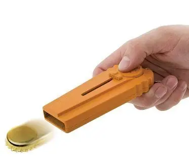 Opening beers has never been more adventurous than with this bottle opening cap launcher! Impress your friends at the party and show them your skills. Your caps will travel as far as five meters! A must-have gadget that you can attach to your keys and take with you wherever you go!