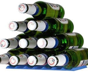 Now you can stack your bottles in a neat and efficient pyramid shape! A simple yet effective design to stop cans and bottles rolling around the fridge. The bottle stacker base can be used for beer or wine sized bottles and also cans. Available in different colors.