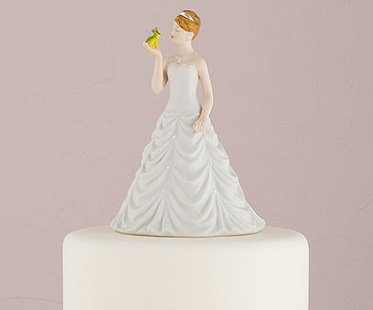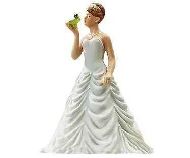 No fairytale wedding would be complete without this bride kissing frog cake topper! Perfect for the couple going for more of their own style as opposed to a traditional topper. Made from hand-painted porcelain.