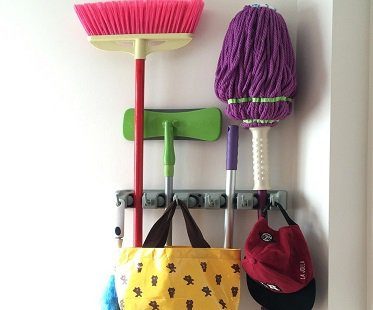 Keep your cleaning tools neat and tidy with this broom organizer! It will keep your floor space free from clutter and heavy items can be clipped in tightly without sliding down. Perfect for your kitchen, utility room or garage.