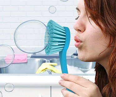 Turn a boring chore into a fun one with this bubble wand dish brush! Wave it through the suds and blow through the hole to create fun bubbles while you wash the dishes. A fun and functional cleaning item for your inner child.