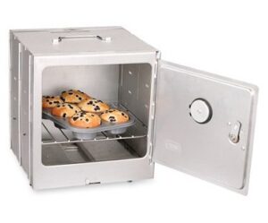 Never miss out on your favorite baked goods again when you head off on a camping vacation! This portable camp oven makes it possible for you to enjoy rolls, muffins and more simply by placing it on top of your burner stove. It even folds flat for easy transportation and storage!