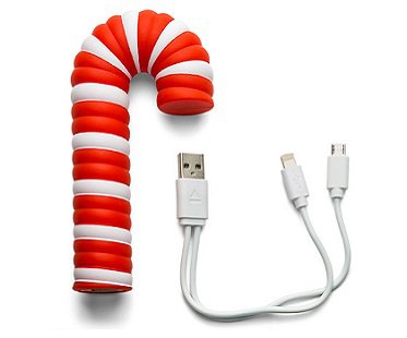 Use the sweet power of this candy cane iPhone charger to juice up your low battery! It will provide your device with up to 3 hours of charge which is perfect when you're out and about and need. Its small size will fit easily in your handbag or pocket.