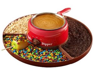 Recreate awesome treats in the comfort of your own home with this caramel apple candy dipper! The central dipping pot melts your caramel or chocolate to the perfect dipping temperature. It also features 3 trays for your chosen toppings. YUM!