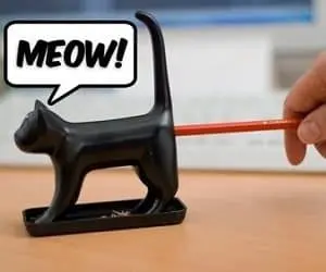You'll be laughing to yourself every time you use this hilarious cat end pencil sharpener! When you sharpen your pencil, it lets out a 'meow'! Comes complete with a litter tray to collect the pencil shavings. It makes a funny gift for anyone with a sense of humor!