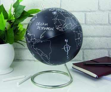 Make your mark on the world with this awesome chalkboard globe! It makes the perfect desktop addition and you can mark places you've been or new adventures you'd like to take. Comes neatly packaged in a gift box which makes it great for giving to the keen traveler in your life.