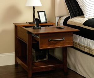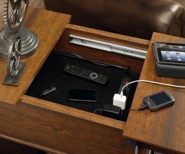 Keep unsightly cables hidden away when you're powering up your devices with this charging station end table! Slide open the top to reveal a hidden compartment with a power strip for your various plugs. A modern and stylish piece of furniture that's perfect for your living room or bedroom.