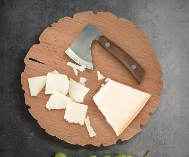 Chop and serve your favorite cheddar, edam and more with this awesome cheese log board and knife set! You'll get clean cut cheese slices when you swing the miniature axe. A fun gift for cheese lovers!