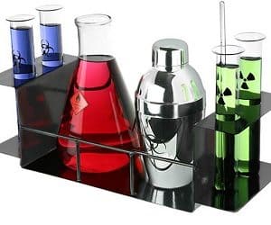 It's time to get your safety goggles on and start experimenting! This chemistry cocktail set is a fun way to create and mix tasty cocktails. Includes two beakers, one flask, one shaker-shaped vessel and a glass stirring stick. Awesome!