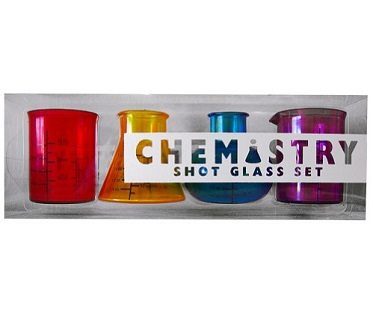 Geeks know how to party too, and what better way to do it than with this chemistry shot glass set! Includes 4 different glasses shaped like beakers so you can accurately measure and mix your concoctions! Made from acetate.