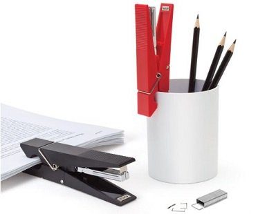 Office essentials don't need to be boring, so add some fun to your desk area with this clothes pin stapler! Also features a handy clip on one end for holding papers together. It will bring a smile to anyones face when they use it!