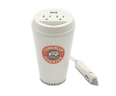 This is possibly the best coffee cup we have ever seen! The coffee cup charger features 2 regular outlets for bigger devices such as laptops, DVD players, portable televisions etc. and 1 USB charger for things like you smartphone or MP3 player. It provides its power via the cigarette lighter that's featured in most cars.
