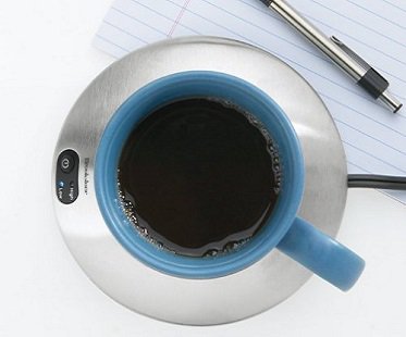 Keep your favorite drink the at perfect temperature for the whole time you're enjoying it for with this coffee cup warmer! There'll be no need to rush your drink or be faced with a cold one when you've got this awesome gadget next to your desk or on your coffee table. It plugs into any wall outlet and features a blue LED light so you know when the warmer is turned on.