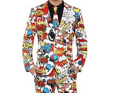 If you simply can't decide which comic book character to go as to the next fancy dress party, then this comic strip suit could be the solution! The jacket, trousers and tie are all included, so simply team them up with a shirt and shoes and you're good to go!