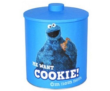What better way to store your sweet treats than inside this Cookie Monster biscuit tin! It features everyone's favorite Sesame Street character complete with his famous saying. Airtight tin to keep cookies fresh.