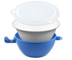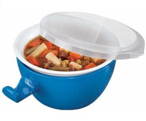 Never burn your hands again with this cool touch microwave bowl! Its simple yet clever design features an inner ceramic bowl for your food and an outer plastic bowl that won't get too hot when you need to handle it. Enjoy warmed up soup straight out of the microwave!
