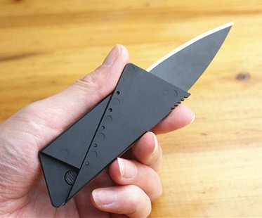 This credit card folding knife is handy to take around with you and can fit right in your wallet! It's ultra thin and lightweight and the blade edge is protected when it's folded away. Features long-lasting, rust-free sharpness.