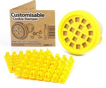Personalize home made treats with your own message using this customizable cookie stamp! You'll get a full alphabet of letters, numbers and icons so you can create cute and tasty cookies for your friends and family. Kids will love making cookies with their names on!