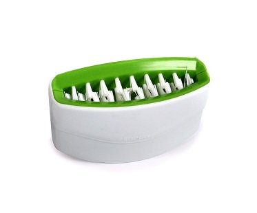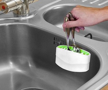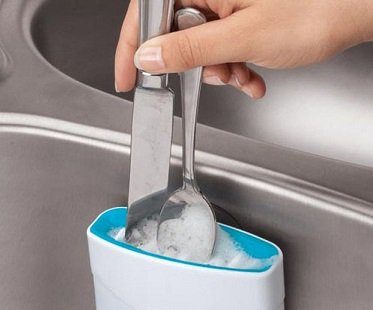 Cleaning up after mealtimes just got a little quicker with this cutlery cleaner! It features bristles inside that will scrub your spoons, forks and knives when you put them inside and there's a suction cup for attaching to the side of your sink. Just add some soap and you're good to go!