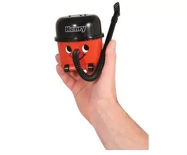 Keep y0ur desk clean and tidy with an actual mini Henry desktop hoover! Great for removing dusk and crumbs, and when he's not in use you can sit him proudly next your your accessories. Battery operated.