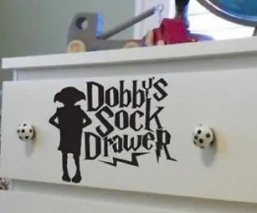 Every wizard or witch needs this 'Dobby's sock drawer' decal in their bedroom! Perfect to use to add a touch of magical decor. Your kids will love getting their socks out of the drawer themselves every morning when they have this fun sticker attached to it.