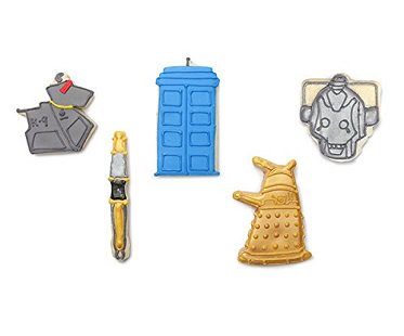 Exterminate your way through a pile of treats made from these Doctor Who cookie cutters! This set of 5 different shapes includes the Tardis, K-9, a Sonic Screwdriver, Cyberman and of course, a Dalek. Once baked, you can get creative with icing designs.