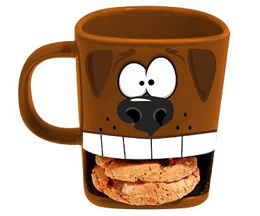 Enjoying your favorite hot drink wouldn't be complete without a cheeky treat to go with it. This awesome dog biscuit mug has a slot at the bottom to fit your favorite biscuit or cookie! Features a fun dog print on the side.