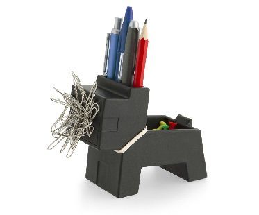 This is Rocky. He's your personal dog desk tidy to keep your workspace organized and looking good. He has a magnetic mouth for your paperclips and storage space for a few pens, pencils and push pins. Available in black or red.