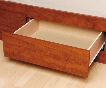 This double platform storage bed is made from high quality laminated composite woods and features 12 roller gliding drawers with safety stops. Available in different colors and a smaller 6 drawer version.